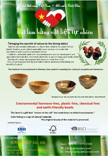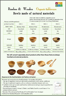 自然染料などの塗料を木・竹・プラスチックに塗布させ食器類を製造する事を出願致しました。今後、無断で自然塗料及び塗布させた場合法的な規制がかかる可能性が発します。対象物および被塗装物は、箸、汁椀、カトラリー、井ぶり、皿などの食器のほか、食卓テーブル、椅子、座卓テーブル、櫛、ブラシ、歯ブラシなどの日用雑貨、積み木、ベービートイ、ままごと用玩具、木製ダンベル等のペット用品等幅広い対象物としております。